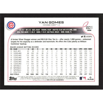 This is a 2022 Topps Chrome Update Yan Gomes baseball card. The card is #USC11 and pictures show condition.