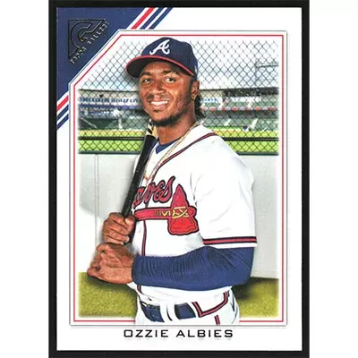 This is a 2022 Topps Gallery Ozzie Albies baseball card. The card is #14 and pictures show condition.