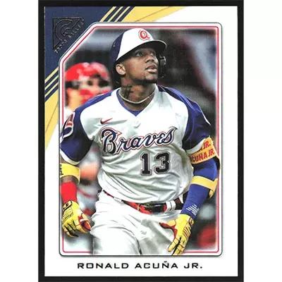 This is a 2022 Topps Gallery Ronald Acuña Jr. baseball card. The card is #147 and pictures show condition.