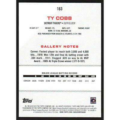 This is a 2022 Topps Gallery Ty Cobb baseball card. The card is #163 and pictures show condition.