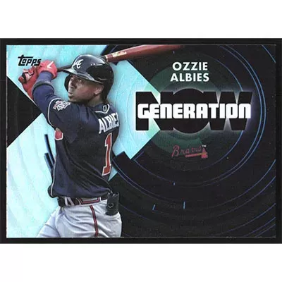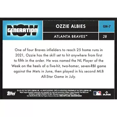 This is a 2022 Topps Generation Now Ozzie Albies baseball card. The card is #GN-7 and pictures show condition.