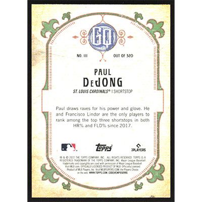 This is a 2022 Topps Gypsy Queen Paul DeJong baseball card. The card is #111 and pictures show condition.