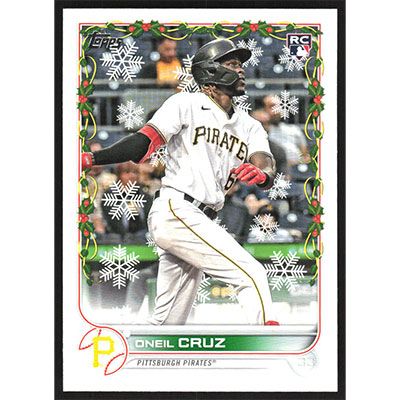 This is a 2022 Topps Holiday Oneil Cruz baseball card. The card is #HW173 and pictures show condition.