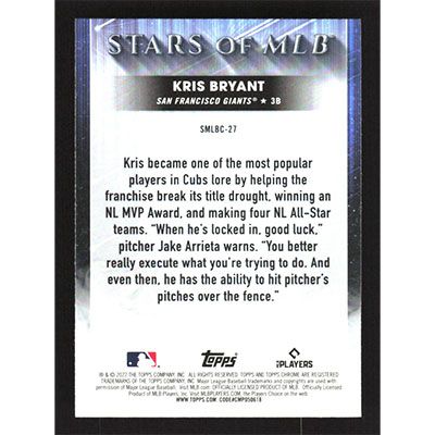 This is a 2022 Topps Stars of MLB Chrome Kris Bryant baseball card. The card is #SMLBC-27 and pictures show condition.