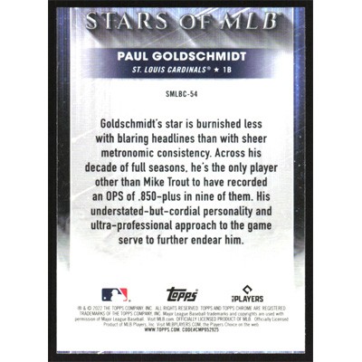 This is a 2022 Topps Stars of MLB Chrome Paul Goldschmidt baseball card. The card is #SMLBC-54 and pictures show condition.