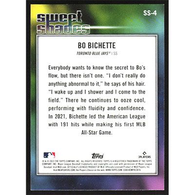 This is a 2022 Topps Sweet Shades Bo Bichette baseball card. The card is #SS-4 and pictures show condition.