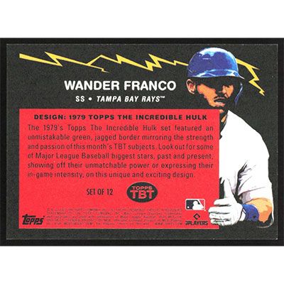 This is a 2022 Topps Throwback Thursday Wander Franco '79 Incredible Hulk baseball card. The card is #79 and pictures show condition. Team(s): Tampa Bay Rays Rookie Card (RC)