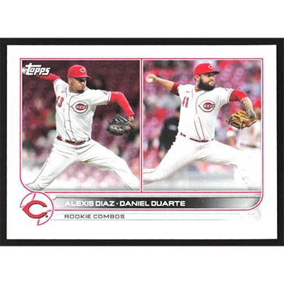 This is a 2022 Topps Update Mini Alexis Diaz and Daniel Duarte Rookie Combos baseball card. The card is #US135 and pictures show condition. Team(s): Cincinnati Reds Rookie Card (RC)
