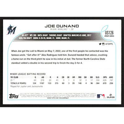 This is a 2022 Topps Update Joe Dunand baseball card. The card is #US126 and pictures show condition.