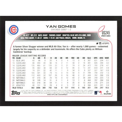 This is a 2022 Topps Update Yan Gomes baseball card. The card is #US245 and pictures show condition.