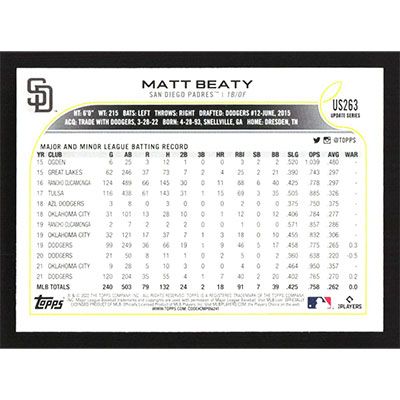 This is a 2022 Topps Update Matt Beaty baseball card. The card is #US263 and pictures show condition.