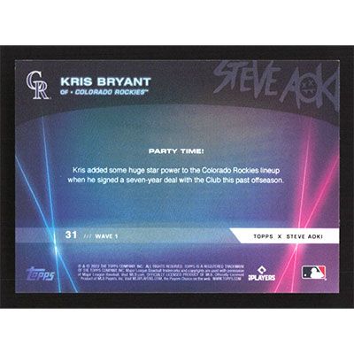 This is a 2022 Topps x Steve Aoki's Baseball Party Kris Bryant baseball card. The card is #31 and pictures show condition.