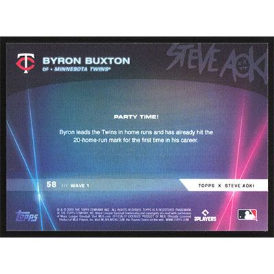 This is a 2022 Topps x Steve Aoki's Baseball Party Byron Buxton baseball card. The card is #58 and pictures show condition.