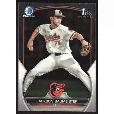 This is a 2023 Bowman Chrome Draft Jackson Baumeister baseball card. The card is #BDC-84 and pictures show condition.