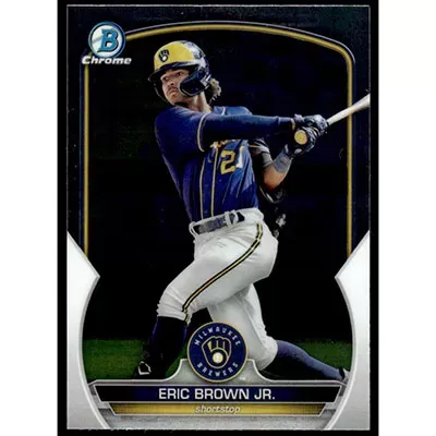 This is a 2023 Bowman Chrome Prospects Eric Brown Jr. baseball card. The card is #BCP-41 and is in NM-MT condition.