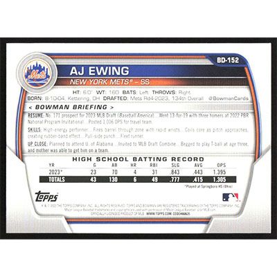 This is a 2023 Bowman Draft AJ Ewing baseball card. The card is #BD-152 and pictures show condition.
