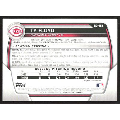 This is a 2023 Bowman Draft Ty Floyd baseball card. The card is #BD-155 and pictures show condition.