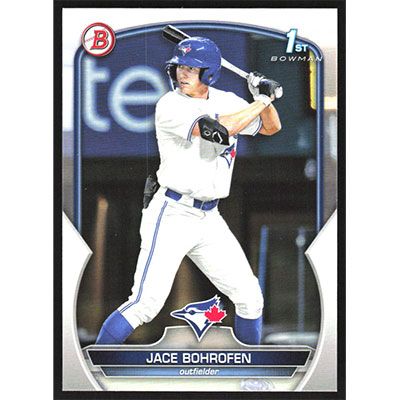 This is a 2023 Bowman Draft Jace Bohrofen baseball card. The card is #BD-173 and pictures show condition.