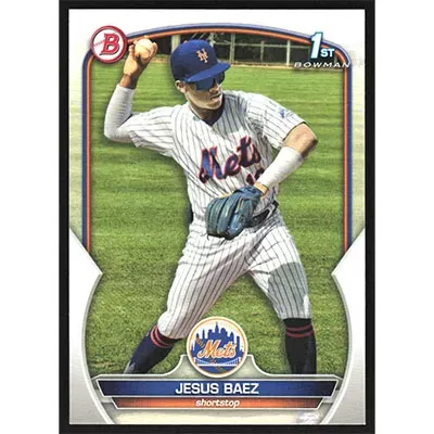 This is a 2023 Bowman Prospects Jesus Baez baseball card. The card is #BP-12 and pictures show condition.