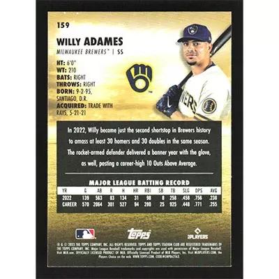 This is a 2023 Stadium Club Willy Adames baseball card. The card is #159 and pictures show condition.