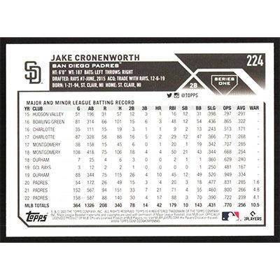 This is a 2023 Topps Jake Cronenworth baseball card. The card is #224 and pictures show condition.