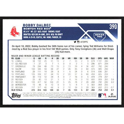 This is a 2023 Topps Bobby Dalbec baseball card. The card is #390 and pictures show condition.