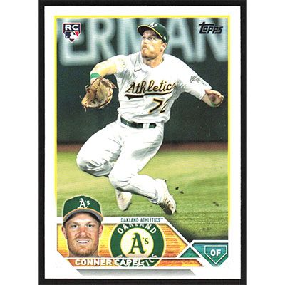 This is a 2023 Topps Conner Capel baseball card. The card is #418 and pictures show condition.