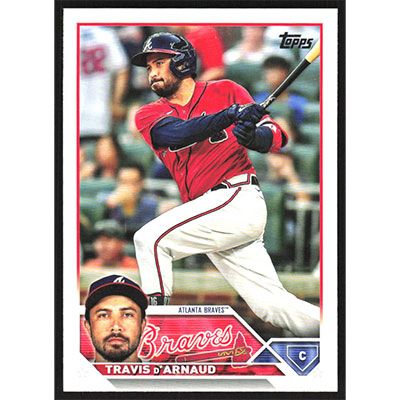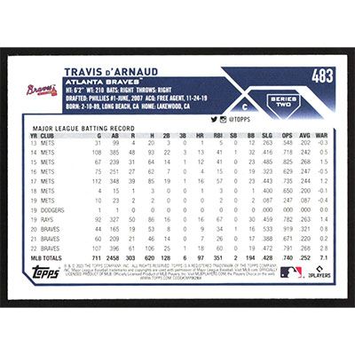 This is a 2023 Topps Travis d'Arnaud baseball card. The card is #483 and pictures show condition.