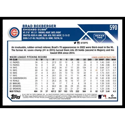 This is a 2023 Topps Brad Boxberger baseball card. The card is #590 and is in NM-MT condition.