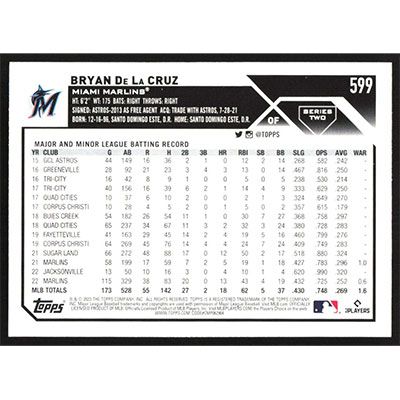 This is a 2023 Topps Bryan De La Cruz baseball card. The card is #599 and pictures show condition.