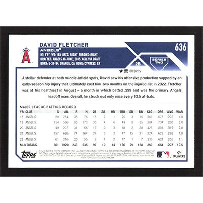 This is a 2023 Topps David Fletcher baseball card. The card is #636 and pictures show condition.