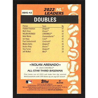 This is a 2023 Topps '88 All-Star Nolan Arenado baseball card. The card is #88AS-43 and pictures show condition.