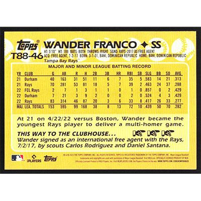 This is a 2023 Topps '88 Wander Franco baseball card. The card is #T88-46 and pictures show condition.