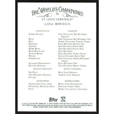 This is a 2023 Topps Allen & Ginter Lou Brock baseball card. The card is #89 and pictures show condition.