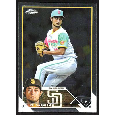 This is a 2023 Topps Chrome Yu Darvish baseball card. The card is #26 and pictures show condition.