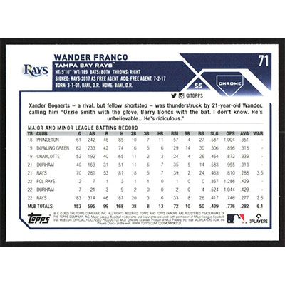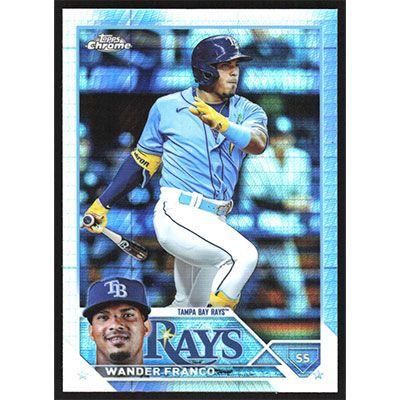 This is a 2023 Topps Chrome Prism Refractors Wander Franco baseball card. The card is #71 and pictures show condition.