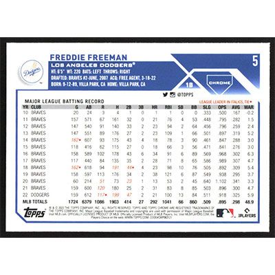 This is a 2023 Topps Chrome Sepia Refractors Freddie Freeman baseball card. The card is #5 and pictures show condition.