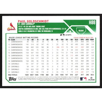 This is a 2023 Topps Holiday Paul Goldschmidt baseball card. The card is #H88 and pictures show condition.