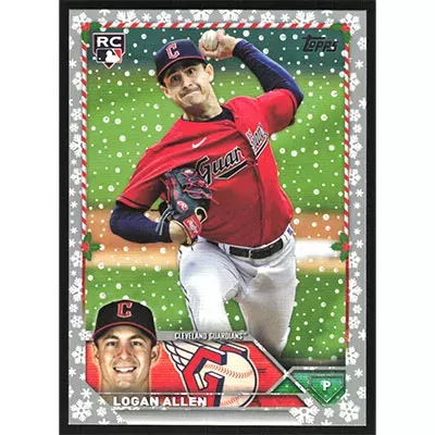 This is a 2023 Topps Holiday Metallic Logan Allen baseball card. The card is #H46 and pictures show condition. Team(s): Cleveland Guardians Rookie Card (RC)