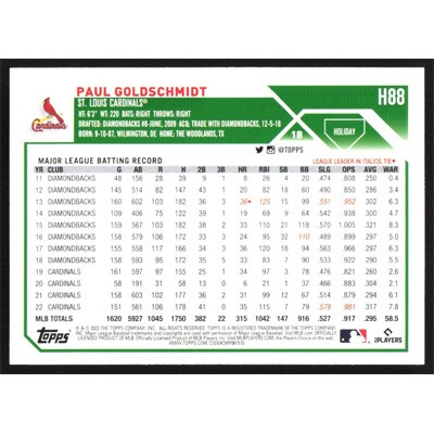 This is a 2023 Topps Holiday Metallic Paul Goldschmidt baseball card. The card is #H88 and pictures show condition.