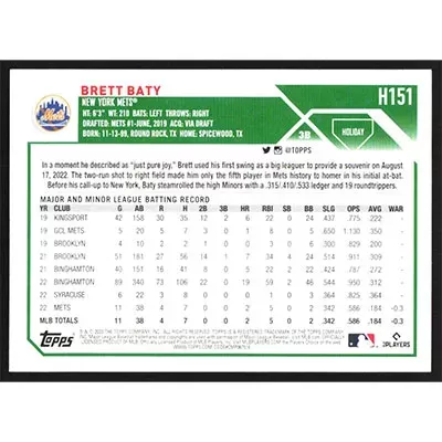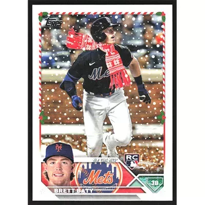 This is a 2023 Topps Holiday Short Print Variations Brett Baty Scarf baseball card. The card is #H151 and pictures show condition. Team(s): New York Mets Rookie Card (RC)