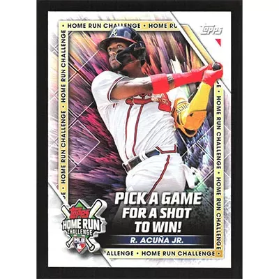 This is a 2023 Topps Home Run Challenge Ronald Acuña Jr. baseball card. The card is #HRC-15 and pictures show condition.