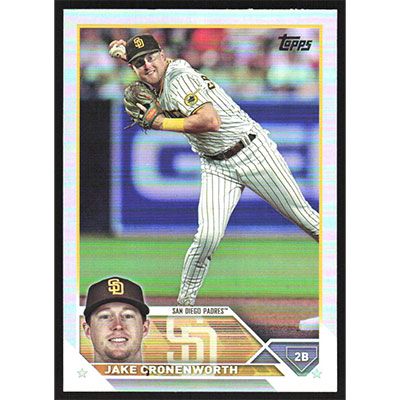 This is a 2023 Topps Rainbow Foil Jake Cronenworth baseball card. The card is #224 and pictures show condition.