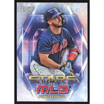 This is a 2023 Topps Stars of MLB Chrome Pete Alonso baseball card. The card is #SMLBC-24 and pictures show condition.