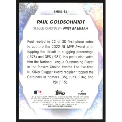 This is a 2023 Topps Stars of MLB Chrome Paul Goldschmidt baseball card. The card is #SMLBC-32 and pictures show condition.