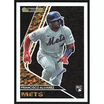 This is a 2023 Topps Update Black Gold Francisco Alvarez baseball card. The card is #BG-16 and pictures show condition. Team(s): New York Mets Rookie Card (RC)