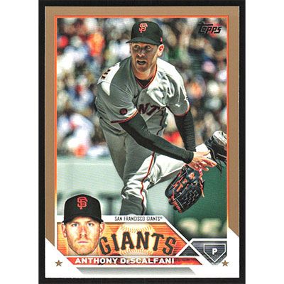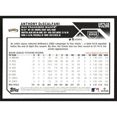 This is a 2023 Topps Update Gold Anthony DeScalfani UER baseball card. The card is #US268 and pictures show condition. This card is limited; #'d 0868/2023.
