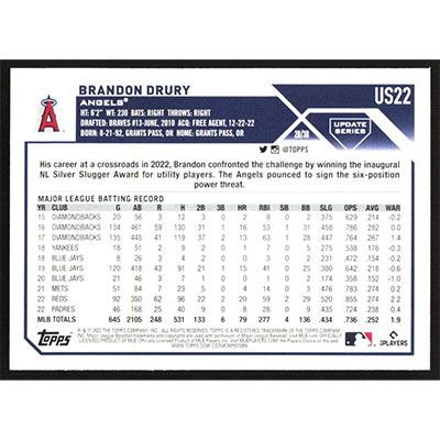 This is a 2023 Topps Update Halloween Orange and Black Foil Brandon Drury baseball card. The card is #US22 and pictures show condition. Team(s): Los Angeles Angels
