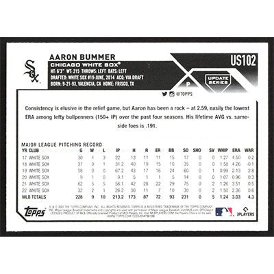This is a 2023 Topps Update Aaron Bummer baseball card. The card is #US102 and pictures show condition.