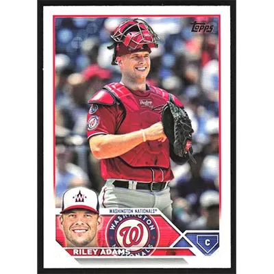 This is a 2023 Topps Update Riley Adams baseball card. The card is #US136 and pictures show condition.